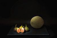 Award winning picture at 1x.com .Minimalistisch stilleven met vijgen en meloen .Het licht van Caravaggio creëert de sfeer van de Oude Meester in een minimalistische Zen sfeer. Ook prachtig op perspex en leuk als muurbehang. 20 procent korting.