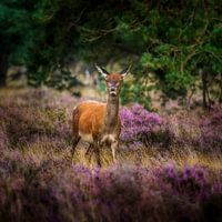 Edelhert vrouwtje tijdens de bronst op de Hoge Veluwe, Nederland