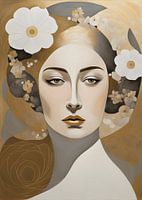 Dit opvallende kunstwerk, ontworpen als eyecatcher voor je huis, toont een elegant portret van een vrouw verweven met boeiende geometrische vormen en kleurrijke bloemen. Haar gelaatstrekken worden benadrukt door de strakke lijnen en vormen om haar heen, terwijl de bloemen een zachte en organische touch toevoegen aan het geheel. De…