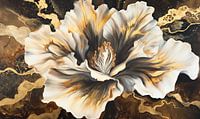 Een abstract schilderij van een azalea (rododendron) met marmer effect.