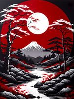 Aziatisch mooi landschap met maanvulkaan en rivier
