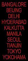 Poster met namen van grote Aziatische steden in kleurrijke levendige letters