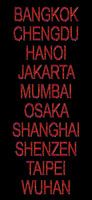 Posters met namen van grote Aziatische steden in heldere levendige kleuren