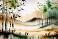 Een landschapschilderij met bamboe in de stijl van de oude Aziatische meesters. Geniet elke dag van romantische natuurlijke kleuren met dit moderne kunstwerk met Aziatische uitstraling. Kies zelf de grootte en het materiaal uit een groot aantal opties. Verander je huis in een toevluchtsoord van kunst, precies zoals jij het…