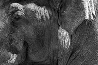 Aziatische olifant met grote slagtanden kijkt naar de camera. De Aziatische of Aziatische olifant (Elephas maximus) is als bedreigd beschouwd omdat de populatie in de afgelopen drie generaties met minstens 50% is afgenomen.