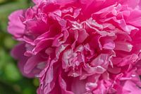 Het werk toont een close-up van een roze pioenroos met sterk geplooide bloemblaadjes. Door de opzettelijke vervaging van de achtergrond komt de structuur van de bloem naar voren - elke plooi, elke kleurnuance wordt zichtbaar. Deze compositie is ontstaan uit het verlangen om bloemmotieven niet als decoratie te zien, maar als een onafhankelijk visueel verhaal.