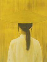Het meest opvallende element van het werk is de grote Nón lá (traditionele Vietnamese hoed), die haar hoofd volledig bedekt en haar gezicht voor de kijker verbergt. Deze hoed, met zijn kenmerkende kegelvorm, symboliseert niet alleen culturele identiteit, maar versterkt ook het minimalistische karakter van de tekening.