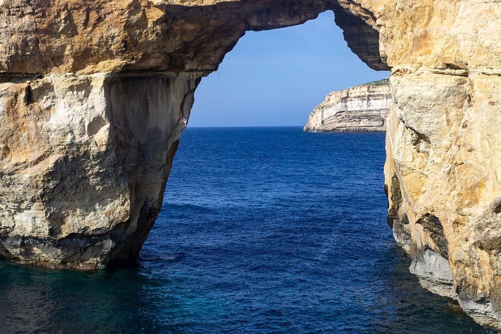 Het Azure Window in Malta. Deze foto is genomen in februari 2017, een kleine maand voordat deze rotsformatie ingezakt is tijdens een storm.