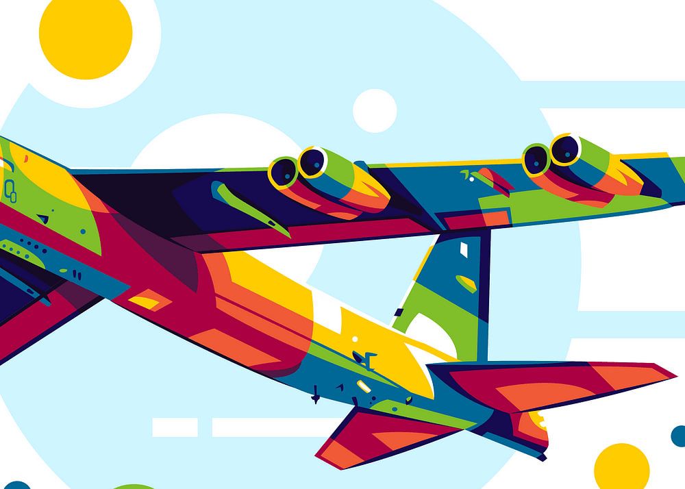 B-52 Stratofortress in Pop Art gemaakt zonder gebogen vormen en een combinatie van vele kleuren om een schattig, elegant, cool en natuurlijk kleurrijk B-52 Stratofortress object te vormen.