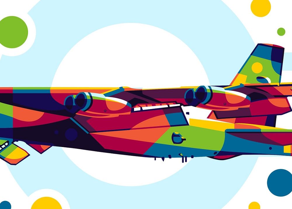 B-52 Stratofortress in Pop Art gemaakt met gebogen vormen en een combinatie van vele kleuren om een schattig, elegant, cool en natuurlijk kleurrijk B-52 object te vormen.