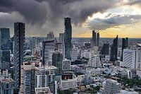 Dramatische zonsondergang boven de hoofdstad van Thailand.