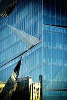 Foto van een moderne gevel van een gebouw in Berlijn, Duitsland. Ik heb de opname van de glazen gevel van de Cube Berlin slechts licht digitaal nabewerkt.