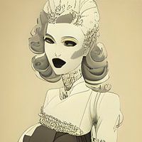 Bette Davis, een buitengewone vrouw en actrice. Ze inspireerde me om dit werk te maken. Een illustratie, digitaal gemaakt (mixed-media). ©8-2022 Pia Schneider, atelier COLOUR-VISION