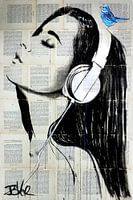 this work created in ink on vintage book pages forms part of a series of works featuring woman and music.