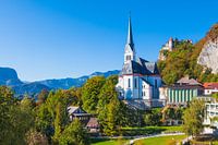 Bled, Slovenië - Panorama van de stad met het kasteel