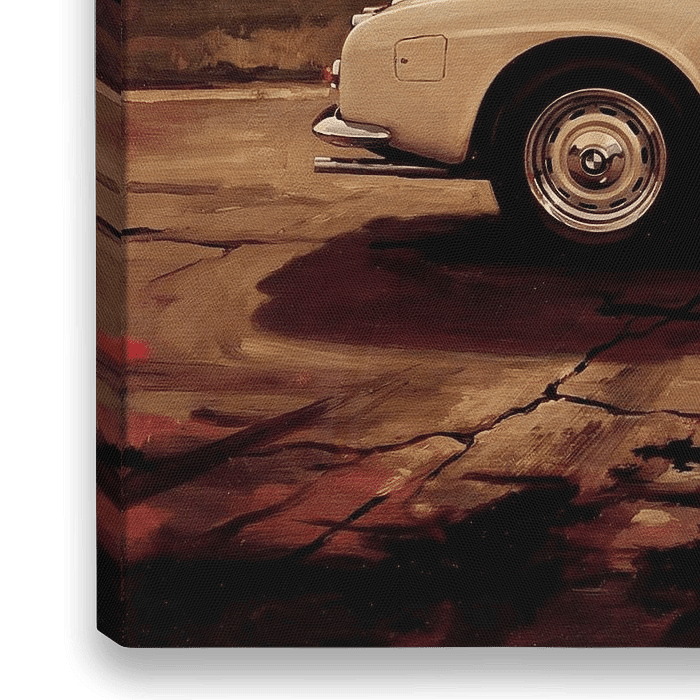 Dit fascinerende olieverfschilderij toont de tijdloze elegantie van de BMW 507, een klassieke cabriolet die het toppunt van automobielkunst is. Tegen de historische achtergrond van het Avus-racecircuit in Berlijn, Duitsland, legt het kunstwerk de BMW 507 in al zijn glorie vast tijdens het gouden uur, met een dramatische zonsondergang…
