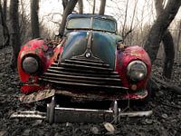 BMW Oldtimer in het bos, Rood in zwart/wit