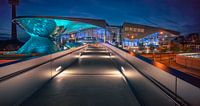 Blauw uur na zonsondergang boven BMW Welt München.