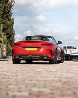 Een foto van een BMW Z4 M40i op een kade in Rotterdam. De foto is op een mooie zonnige dag genomen.