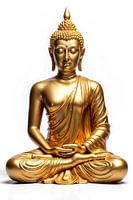 Een figuur van volmaakte rust zit in tijdloze balans, omhuld door een gouden glans die zacht over elke vorm vloeit. De gesloten ogen stralen diepe sereniteit uit, terwijl de vloeiende lijnen van het gewaad en de harmonieuze houding volledige stilte belichamen. In deze weergave lijkt de tijd zelf stil te staan—een moment van pure…