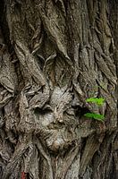 BOOMGEZICHT: Inkepingen in de schors van een boom die op een gezicht lijken. TREE FACE: Indentations in the bark of a tree that look like a face.