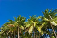 Kokospalmen onder blauwe hemel