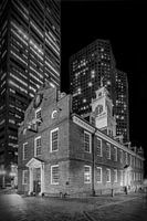 Over ‘BOSTON Old State House at night | monochroom’ van Melanie Viola