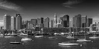 Een boottocht voor de kust van Boston. Een idyllisch uitzicht op de Skyline van de North End, de Custom House Tower en de moderne wolkenkrabbers van het financial district.