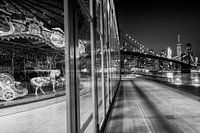 Uitzicht vanaf de Brooklyn Bridge Park van de Skyline van Manhattan met Jane ' s Carousel op de voorgrond.