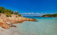 Baai en rotskust met het strand Poltu Di Li Cogghj, Het favoriete strand van prins Karim Aga Khan, Romazzino, Sardinia, Italië