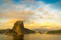 Baai van Rio de Janeiro met de Suikerbroodberg bij dageraad vanaf het schip