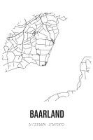 Zwart-witte landkaart, stratenplan of plattegrond van Baarland. Baarland is gelegen in de gemeente Borsele, provincie Zeeland. Op de stadskaart zijn alle openbare wegen in Baarland opgenomen. Verder is de kaart voorzien van de coördinaten van het centrum van Baarland.