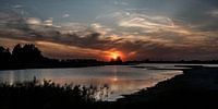 De Baarzandse kreek tussen Breskens en Schoondijke bij zonsondergang. Zachte blauw-paars-roze kleuren, het water lijkt wel een laken.