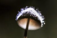 Dit is volgens mij een mycena. Het bijzondere is dat dit vruchtbeginsel van een schimmel ook aangetast is door een mycenaparasiet, en van binnenuit wordt aangetast.