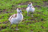 Schattige foto van baby gansjes (Grote Canadese gans (Branta canadensis)) in het Vondelpark, Amsterdam