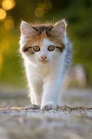 Schattige babykat loopt recht op de camera af