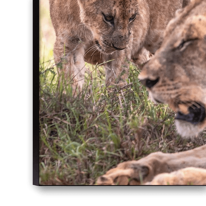 Uiteindelijk ben ik erin geslaagd precies deze unieke sfeer van wilde dieren vast te leggen. Hier zie je een leeuwenwelp achter zijn moeder.