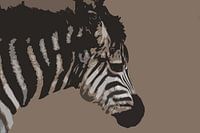Een jonge zebra in close-up. Zebra's leven in groepen in het midden en zuiden van Afrika. Deze foto maakte ik in een nationaal park in Zuid-Afrika. De foto is bewerkt met een knipsel filter, wat de afbeelding gestileerd en minimalistisch maakt.
