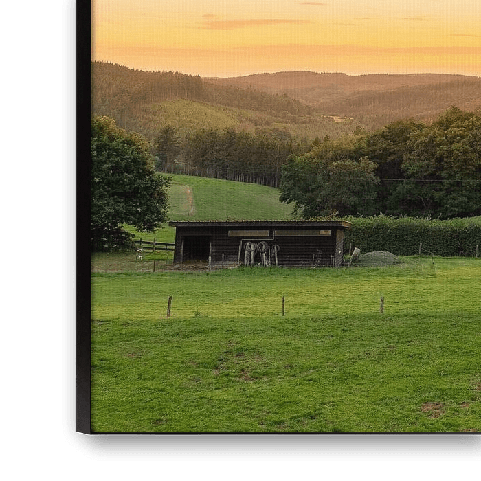 Deze foto is gemaakt tijdens onze vakantie in de Ardennen, in het plaatsje 'Grimbiémont'. Vanaf ons dakterras hadden we zicht op een schitterende zonsondergang. Dus toch maar de camera erbij gepakt en deze foto gemaakt. Het betreft een HDR-foto uit 5 foto's.