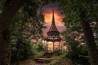 Avondsfeer bij de Hohenzollern toren boven Bad Bertrich, Eifel, Rijnland-Palts, Duitsland