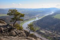 Uitzicht op de Elbevallei vanop de top van de Lilienstein, een tafelberg in het Nationaal Park Saksisch Zwitserland.