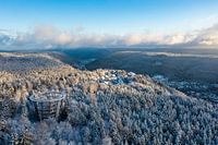 Luchtfoto van de Sommerberg met de boomtoppenwandeling in Bad Wildbad in de winter.