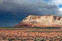 Opkomend slecht weer boven een rotsformatie ergens tussen Monument Valley en de Hoover dam