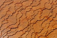 Badab-e Suurt Hete Bron met bruine structuur van terrassen van kalk en water in Iran.