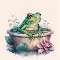Een grappige creatie met een kikker in bad.