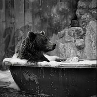 Deze originele badkamerfoto is een echte blikvanger! Met een ontspannen beer die geniet van de rust in zijn badkuip, brengt het charme en humor in elke moderne badkamer. De zwart-wit tinten van de foto benadrukken zijn tijdloze elegantie, terwijl de scène zelf opvalt tussen de leuke afbeeldingen. Dit werk is ideaal voor het ontwerp van een toilet of badkamer en herinnert eraan dat dieren ook toiletmomenten kunnen hebben. Deze moderne serie badkamerfoto's biedt een onconventionele decoratie die zowel een glimlach op je gezicht tovert als stijlvolle flair toevoegt.