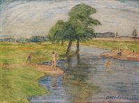Koop Badscène, Otto Modersohn als reproductie geprint op canvas, aluminium dibond, (ingelijste) fotoprint, behang en ArtFrame. Voor jou op maat geprint in Fine-Art kwaliteit.
