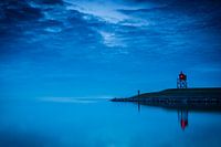 Rood baken bij het havenhoofd van Stavoren op een kalme zomer avond.