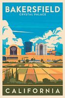 Een fascinerende reisposter die de charme van Bakersfield vastlegt. De gestileerde gebouwen stralen tijdloze elegantie uit, terwijl de glooiende heuvels op de achtergrond de natuurlijke schoonheid van Californië benadrukken. De harmonieuze kleuren en nostalgische sfeer maken het perfect voor een woonkamer om een uitnodigende en ontspannen sfeer te creëren.