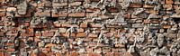 Oppervlak van een verbrijzelde bakstenen gevel van een huis van verbrande bakstenen in de binnenstad van Maagdenburg in Duitsland